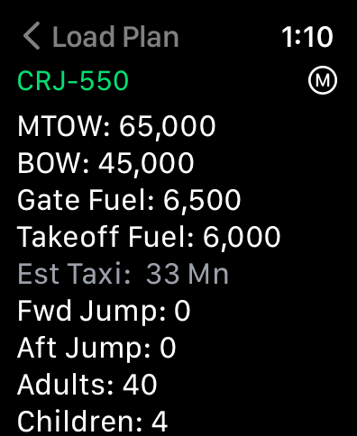 I added a CRJ-550 Load Planner to my flightUtils application. If anyone would like to use it, please let me know ( Shawn at hanafarm dot biz). It requires WatchOS 8 and Apple Watch 3 or later.